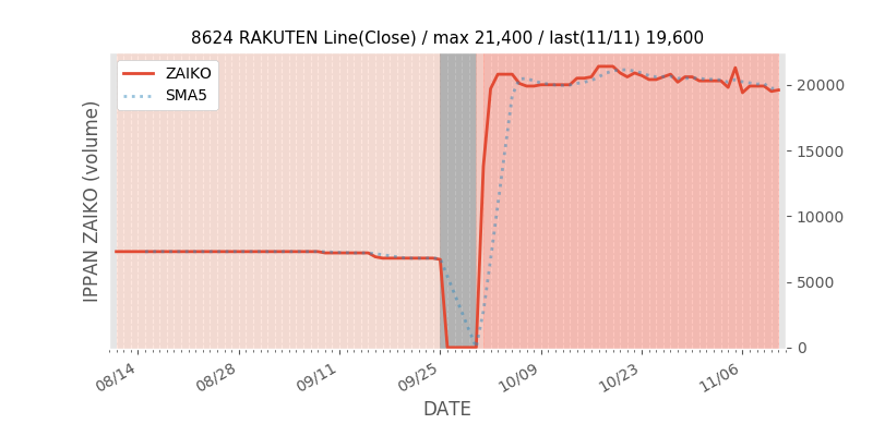 - SBIとGMOを含んだ直近数日の在庫の履歴