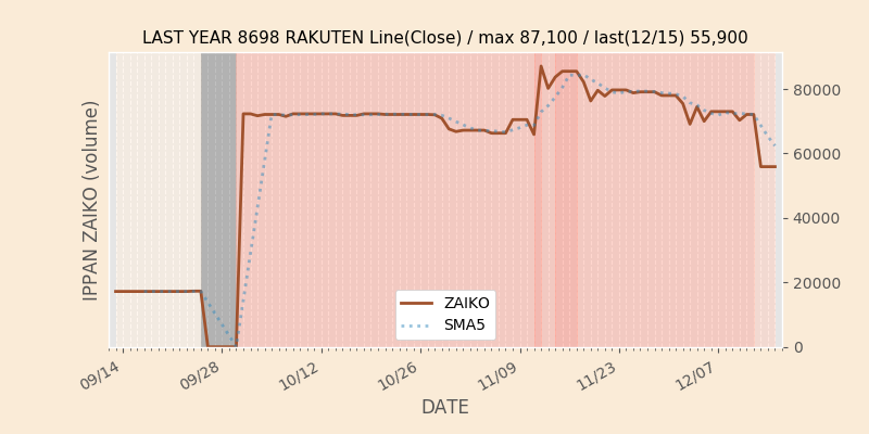権利落ち日になると在庫が急回復します。どれだけの在庫が供給されたかを類推できます。もちろん、権利付最終日以前に大量補充された例も目立ちますから、過去チャートをご覧になる際は日付にご注意ください。