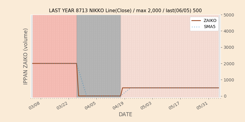 権利落ち日になると在庫が急回復します。どれだけの在庫が供給されたかを類推できます。もちろん、権利付最終日以前に大量補充された例も目立ちますから、過去チャートをご覧になる際は日付にご注意ください。