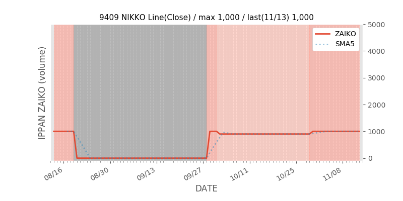 権利落ち日になると在庫が急回復します。どれだけの在庫が供給されたかを類推できます。もちろん、権利付最終日以前に大量補充された例も目立ちますから、過去チャートをご覧になる際は日付にご注意ください。