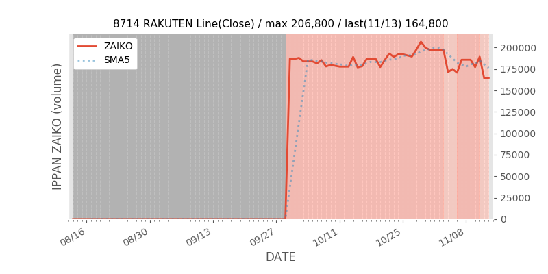 - SBIとGMOを含んだ直近数日の在庫の履歴