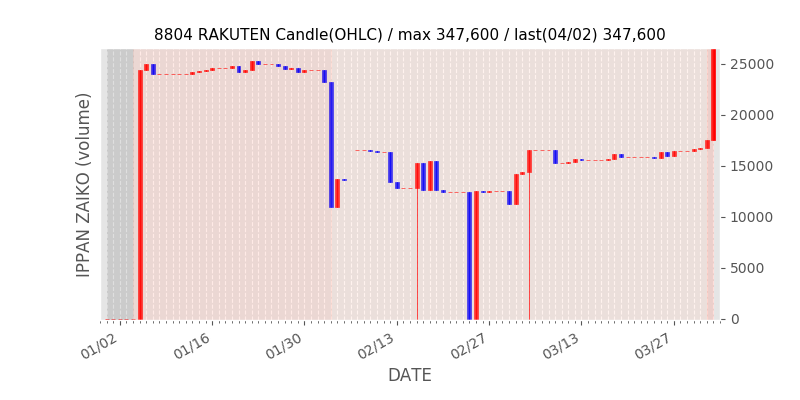 権利落ち日になると在庫が急回復します。どれだけの在庫が供給されたかを類推できます。もちろん、権利付最終日以前に大量補充された例も目立ちますから、過去チャートをご覧になる際は日付にご注意ください。