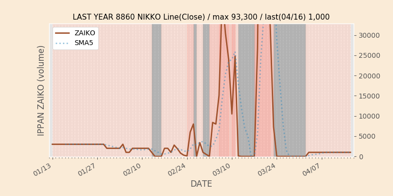 権利落ち日になると在庫が急回復します。どれだけの在庫が供給されたかを類推できます。もちろん、権利付最終日以前に大量補充された例も目立ちますから、過去チャートをご覧になる際は日付にご注意ください。