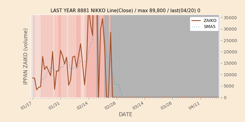 権利落ち日になると在庫が急回復します。どれだけの在庫が供給されたかを類推できます。もちろん、権利付最終日以前に大量補充された例も目立ちますから、過去チャートをご覧になる際は日付にご注意ください。