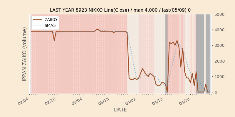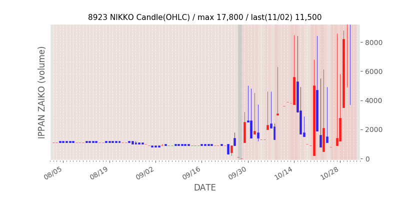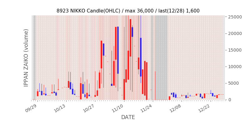 権利落ち日になると在庫が急回復します。どれだけの在庫が供給されたかを類推できます。もちろん、権利付最終日以前に大量補充された例も目立ちますから、過去チャートをご覧になる際は日付にご注意ください。