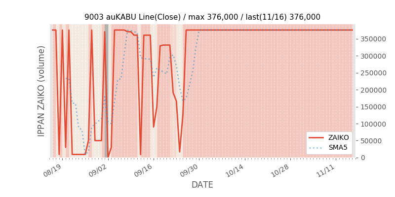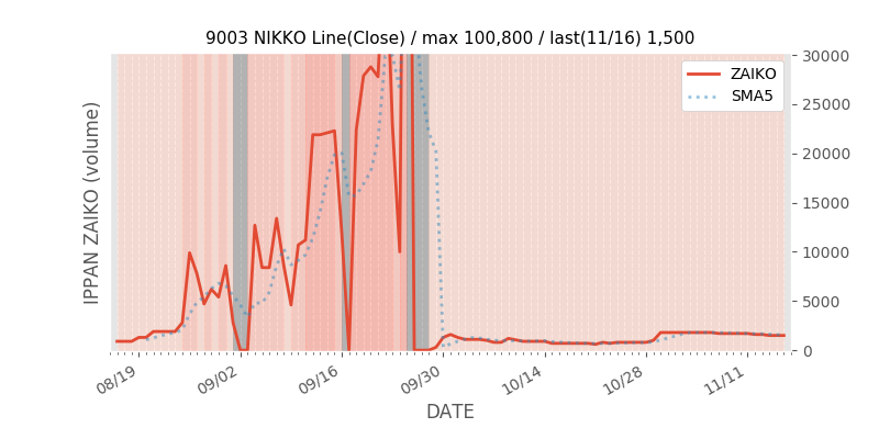 権利落ち日になると在庫が急回復します。どれだけの在庫が供給されたかを類推できます。もちろん、権利付最終日以前に大量補充された例も目立ちますから、過去チャートをご覧になる際は日付にご注意ください。