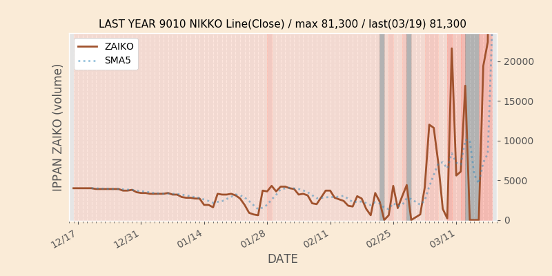 の一般在庫(一般信用売り可能株数)の推移が分かるグラフです。