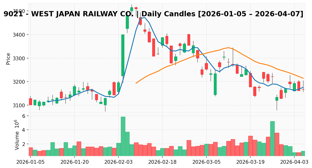 西日本旅客鉄道(銘柄コード:9021) ※2026/04/08朝更新