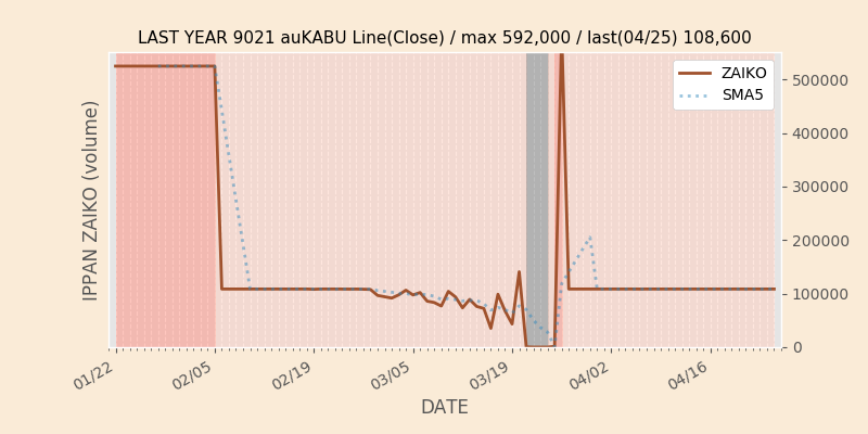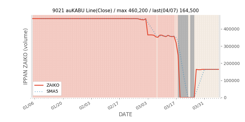 権利落ち日になると在庫が急回復します。どれだけの在庫が供給されたかを類推できます。もちろん、権利付最終日以前に大量補充された例も目立ちますから、過去チャートをご覧になる際は日付にご注意ください。