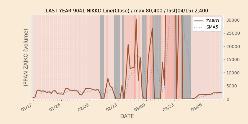 高値付近にある指値注文の合計株数です。一見在庫は無いのにキープの注文だけ行われクロス実行されないまま終わる注文は多数あり、その株数がどのくらいか?を推定する手がかりです。当然株数の全てが一般売りとは限りませんが、在庫数だけでは実態が見えない現状への対策です。