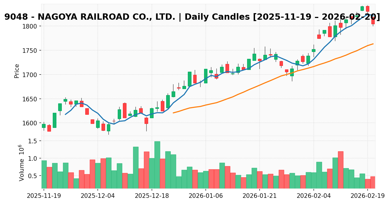 名古屋鉄道(銘柄コード:9048) ※2026/02/22朝更新