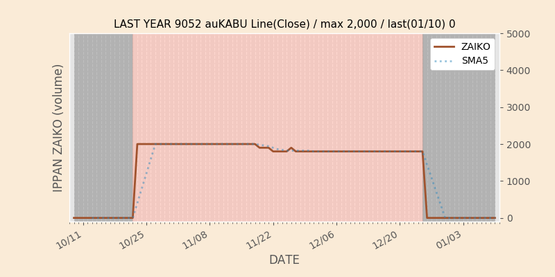 高値付近にある指値注文の合計株数です。一見在庫は無いのにキープの注文だけ行われクロス実行されないまま終わる注文は多数あり、その株数がどのくらいか?を推定する手がかりです。当然株数の全てが一般売りとは限りませんが、在庫数だけでは実態が見えない現状への対策です。