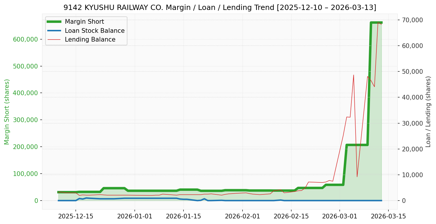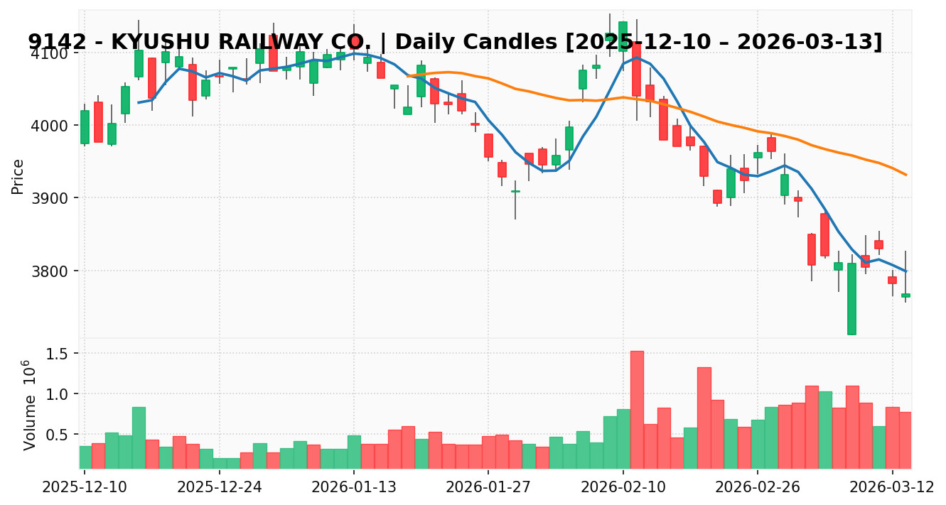 九州旅客鉄道(銘柄コード:9142) ※2026/03/14朝更新