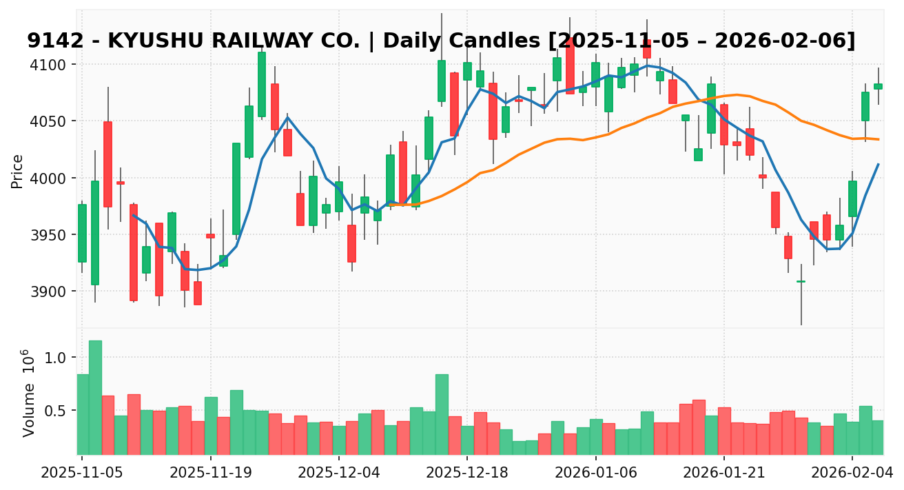 九州旅客鉄道(銘柄コード:9142) ※2026/02/08朝更新