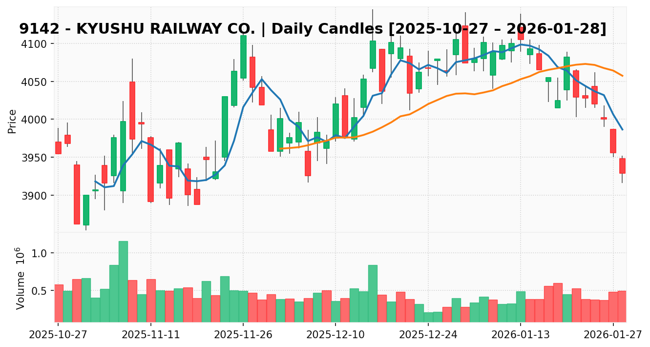 九州旅客鉄道(銘柄コード:9142) ※2026/01/29朝更新