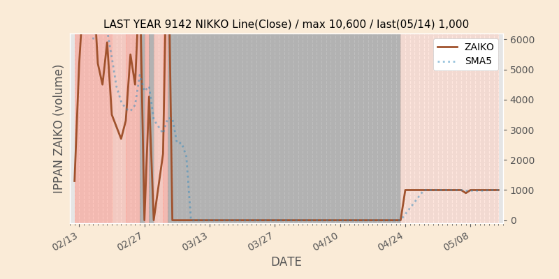 高値付近にある指値注文の合計株数です。一見在庫は無いのにキープの注文だけ行われクロス実行されないまま終わる注文は多数あり、その株数がどのくらいか?を推定する手がかりです。当然株数の全てが一般売りとは限りませんが、在庫数だけでは実態が見えない現状への対策です。