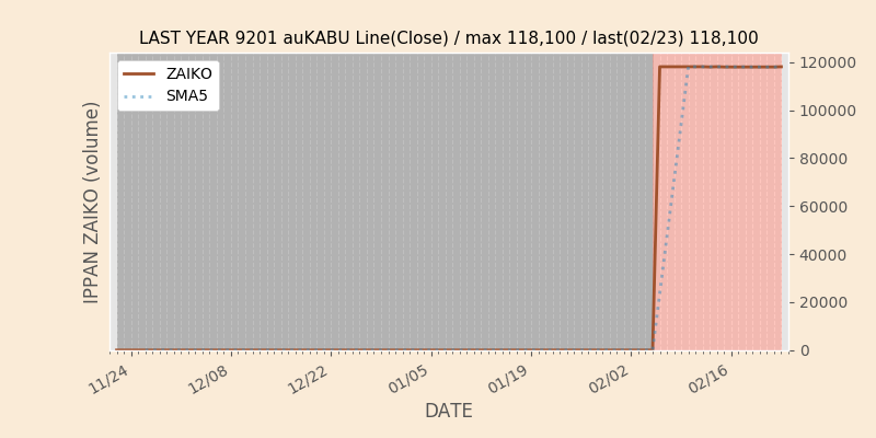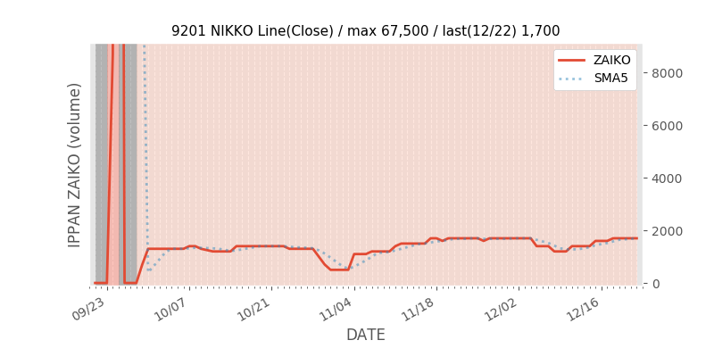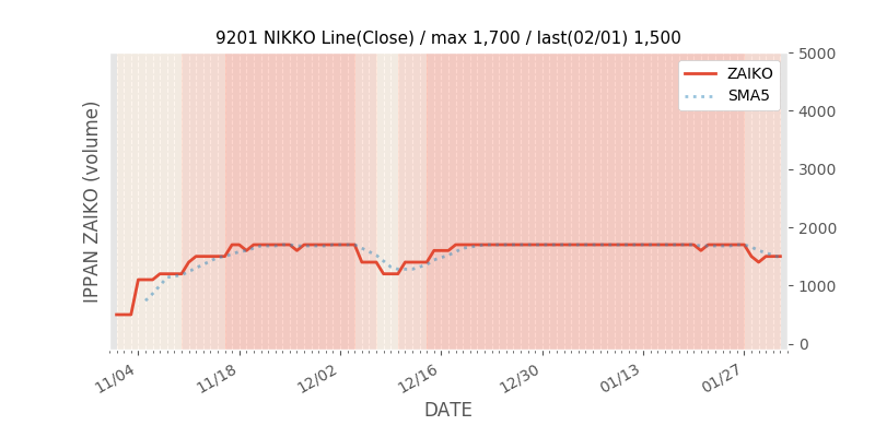 JALJALJALJAL日本航空日本航空日本航空日本航空の一般信用在庫推移