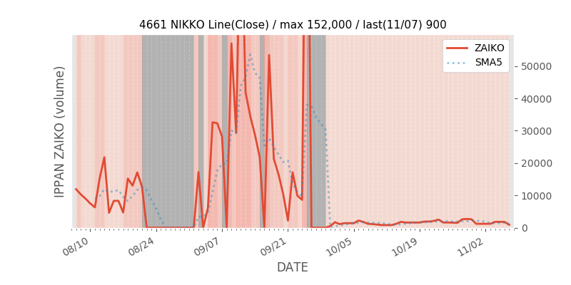 権利落ち日になると在庫が急回復します。どれだけの在庫が供給されたかを類推できます。もちろん、権利付最終日以前に大量補充された例も目立ちますから、過去チャートをご覧になる際は日付にご注意ください。