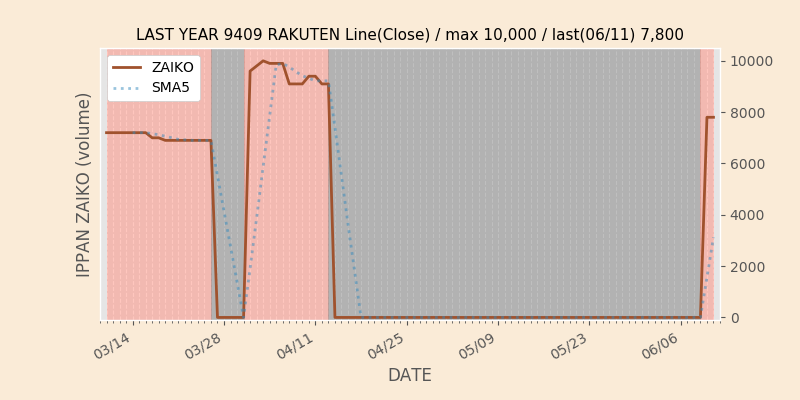 権利落ち日になると在庫が急回復します。どれだけの在庫が供給されたかを類推できます。もちろん、権利付最終日以前に大量補充された例も目立ちますから、過去チャートをご覧になる際は日付にご注意ください。