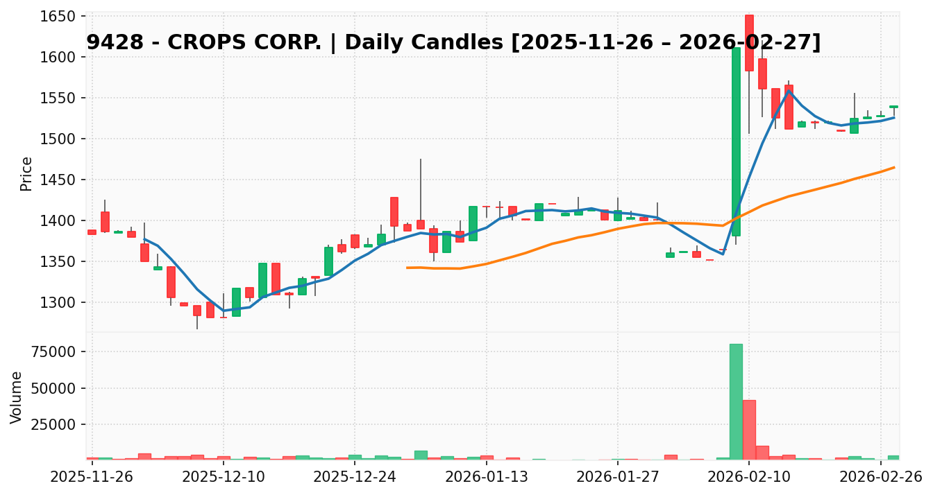 クロップス(銘柄コード:9428) ※2026/03/01朝更新