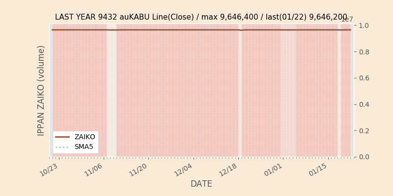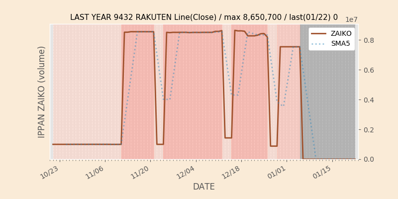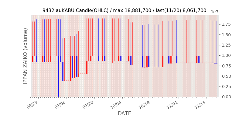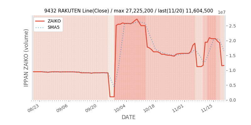 高値付近にある指値注文の合計株数です。一見在庫は無いのにキープの注文だけ行われクロス実行されないまま終わる注文は多数あり、その株数がどのくらいか?を推定する手がかりです。当然株数の全てが一般売りとは限りませんが、在庫数だけでは実態が見えない現状への対策です。