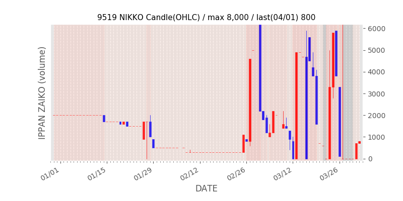 権利落ち日になると在庫が急回復します。どれだけの在庫が供給されたかを類推できます。もちろん、権利付最終日以前に大量補充された例も目立ちますから、過去チャートをご覧になる際は日付にご注意ください。