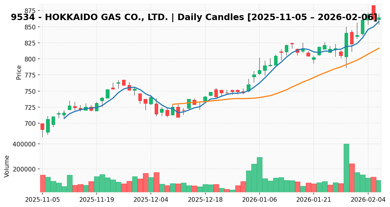 北海道ガス(銘柄コード:9534) ※2026/02/09朝更新