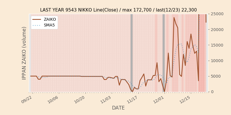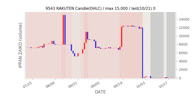 権利落ち日になると在庫が急回復します。どれだけの在庫が供給されたかを類推できます。もちろん、権利付最終日以前に大量補充された例も目立ちますから、過去チャートをご覧になる際は日付にご注意ください。