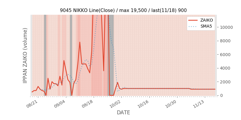 権利落ち日になると在庫が急回復します。どれだけの在庫が供給されたかを類推できます。もちろん、権利付最終日以前に大量補充された例も目立ちますから、過去チャートをご覧になる際は日付にご注意ください。