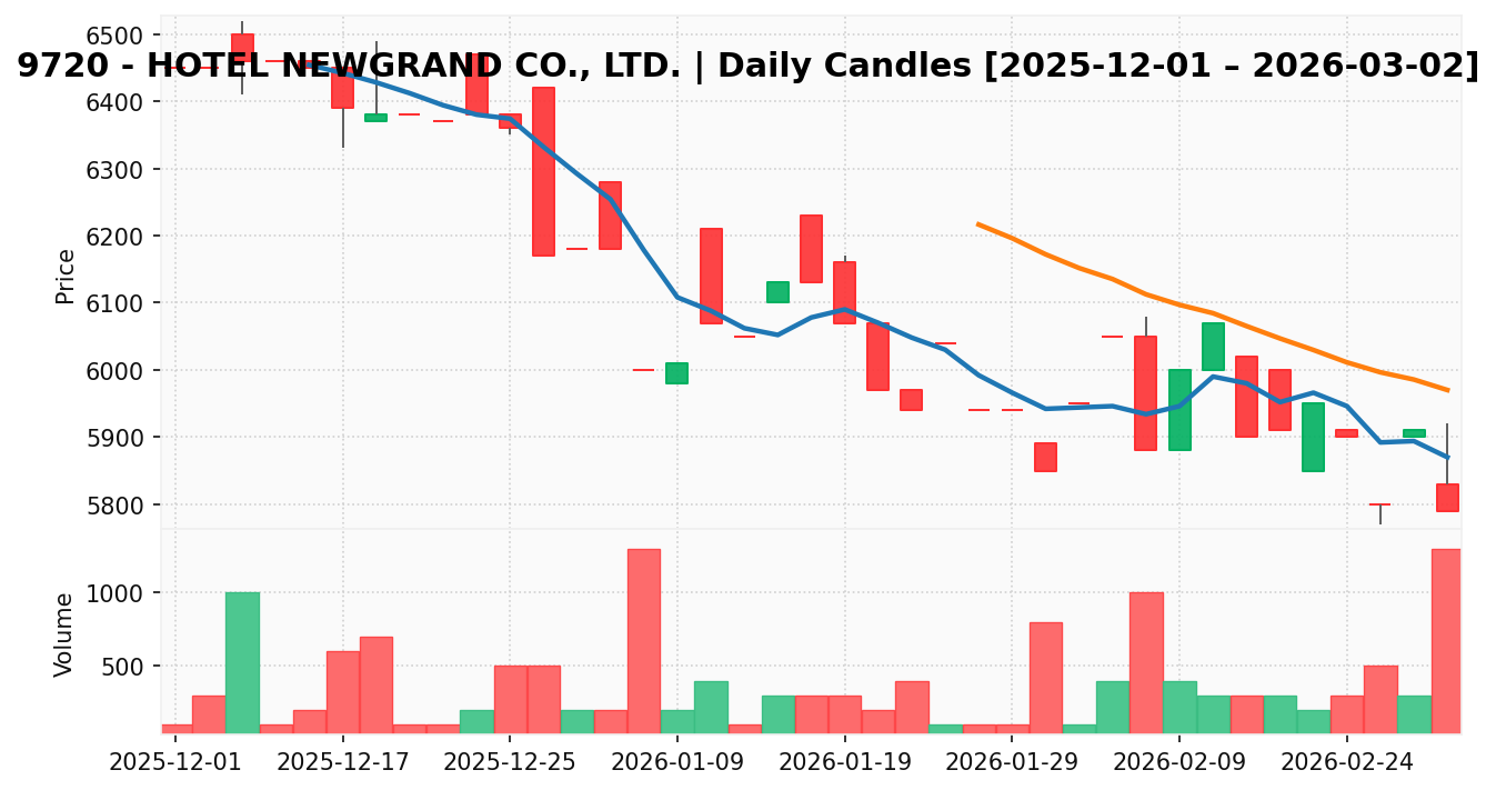 ホテル、ニューグランド(銘柄コード:9720) ※2026/03/05朝更新