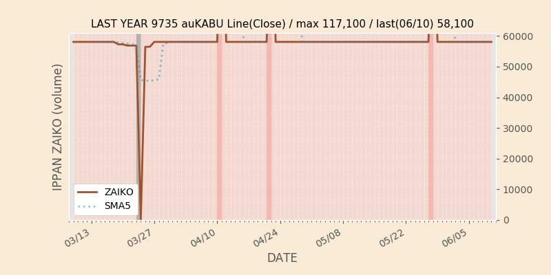 権利落ち日になると在庫が急回復します。どれだけの在庫が供給されたかを類推できます。もちろん、権利付最終日以前に大量補充された例も目立ちますから、過去チャートをご覧になる際は日付にご注意ください。