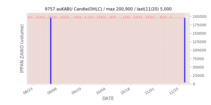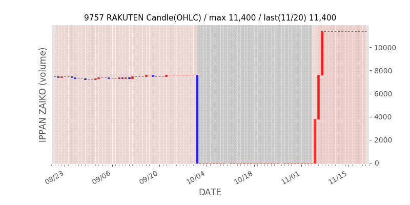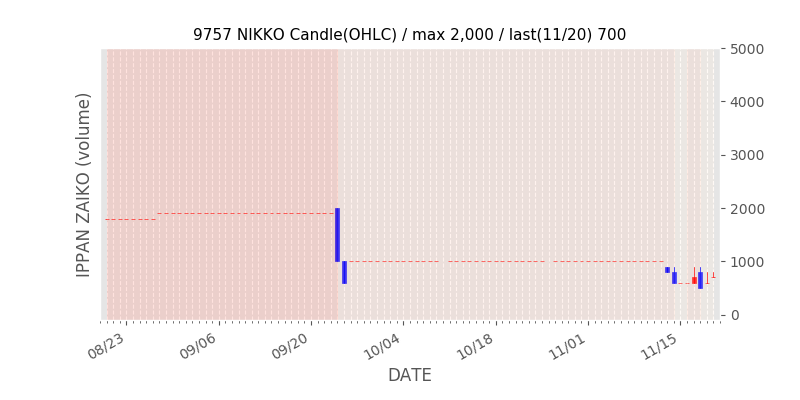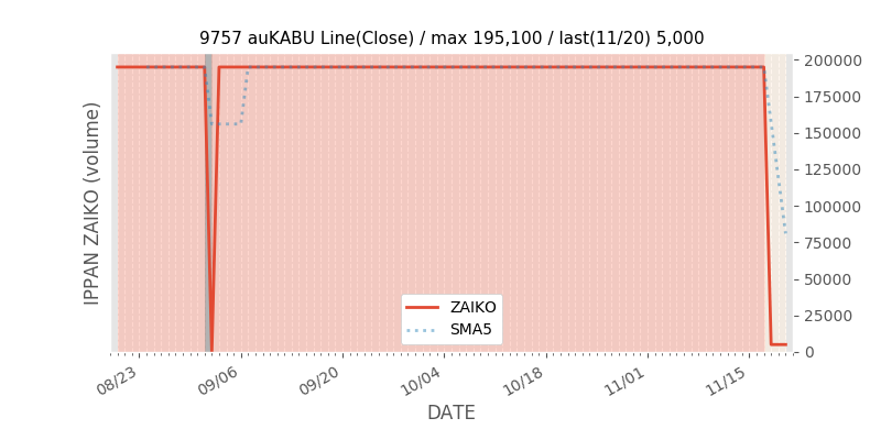 権利落ち日になると在庫が急回復します。どれだけの在庫が供給されたかを類推できます。もちろん、権利付最終日以前に大量補充された例も目立ちますから、過去チャートをご覧になる際は日付にご注意ください。