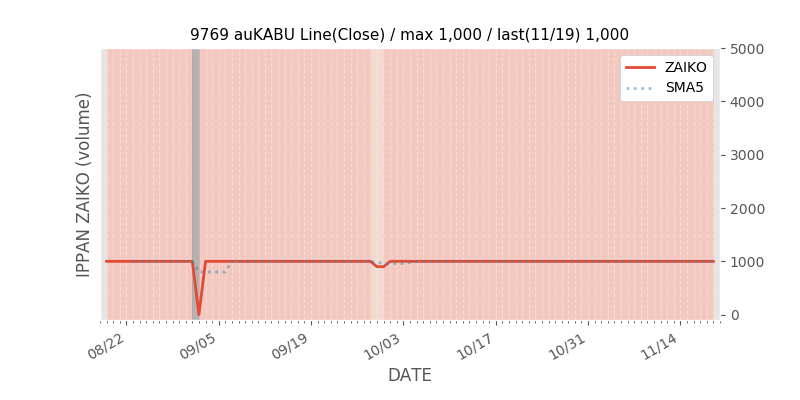 権利落ち日になると在庫が急回復します。どれだけの在庫が供給されたかを類推できます。もちろん、権利付最終日以前に大量補充された例も目立ちますから、過去チャートをご覧になる際は日付にご注意ください。