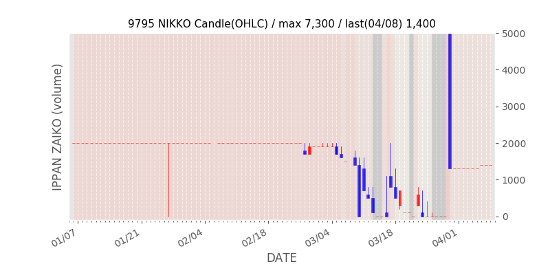 権利落ち日になると在庫が急回復します。どれだけの在庫が供給されたかを類推できます。もちろん、権利付最終日以前に大量補充された例も目立ちますから、過去チャートをご覧になる際は日付にご注意ください。