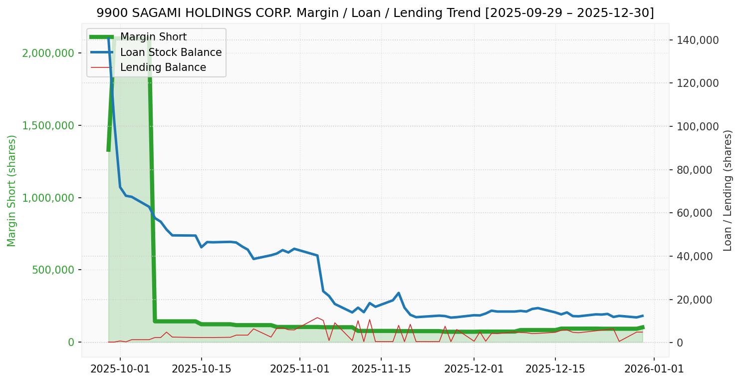 サガミ(銘柄コード:9900) ※2026/01/03朝更新