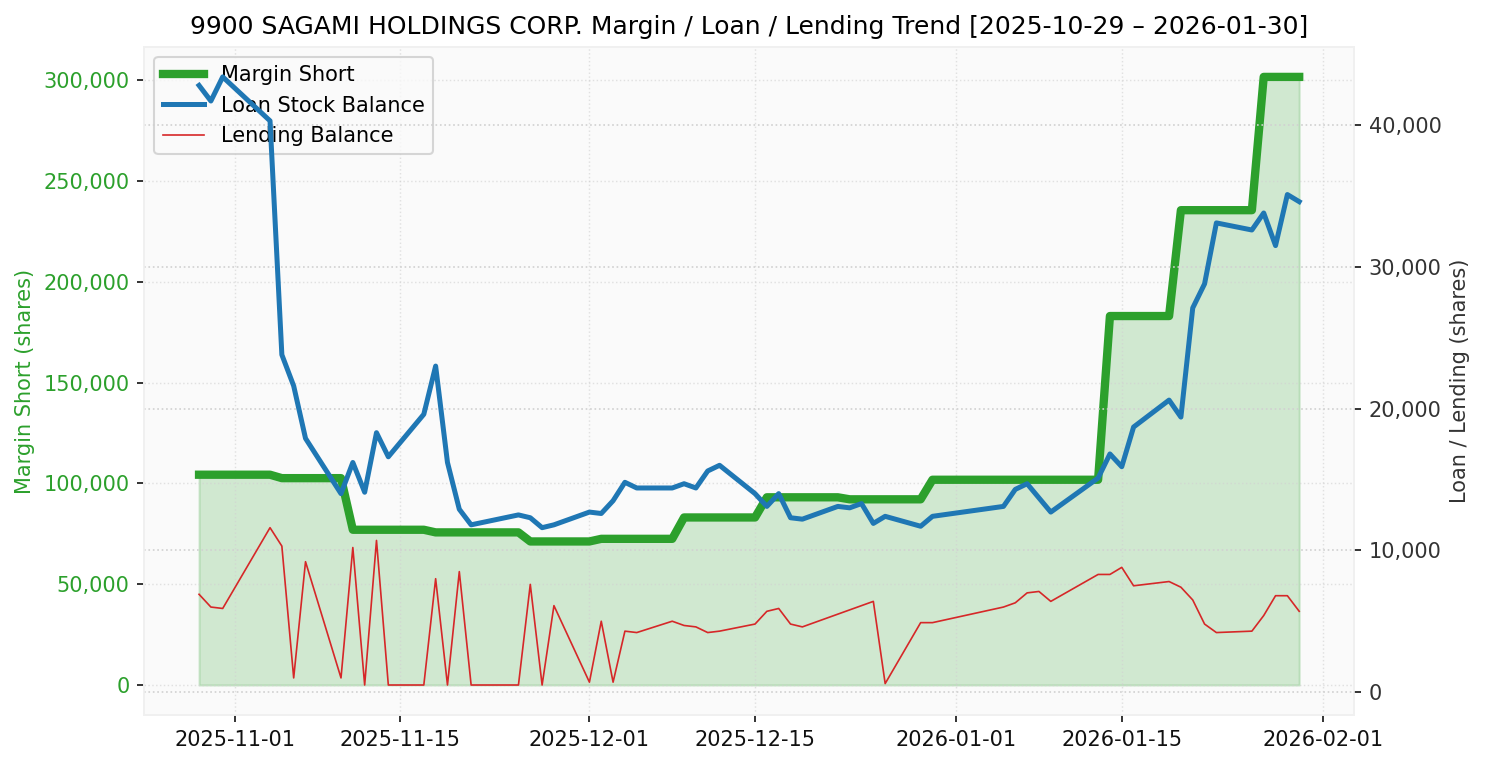サガミ(銘柄コード:9900) ※2026/02/01朝更新