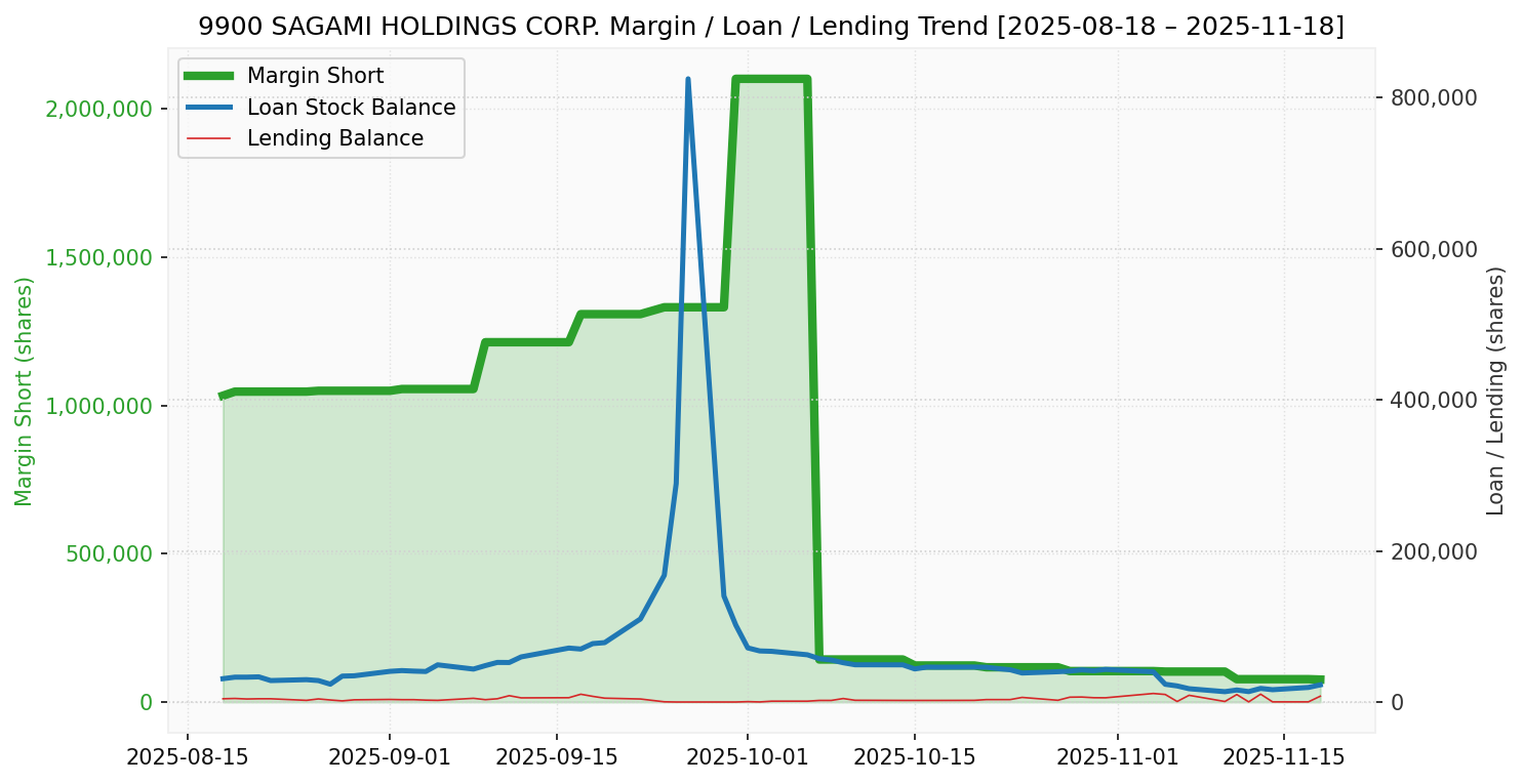 サガミ(銘柄コード:9900) ※2025/11/19朝更新