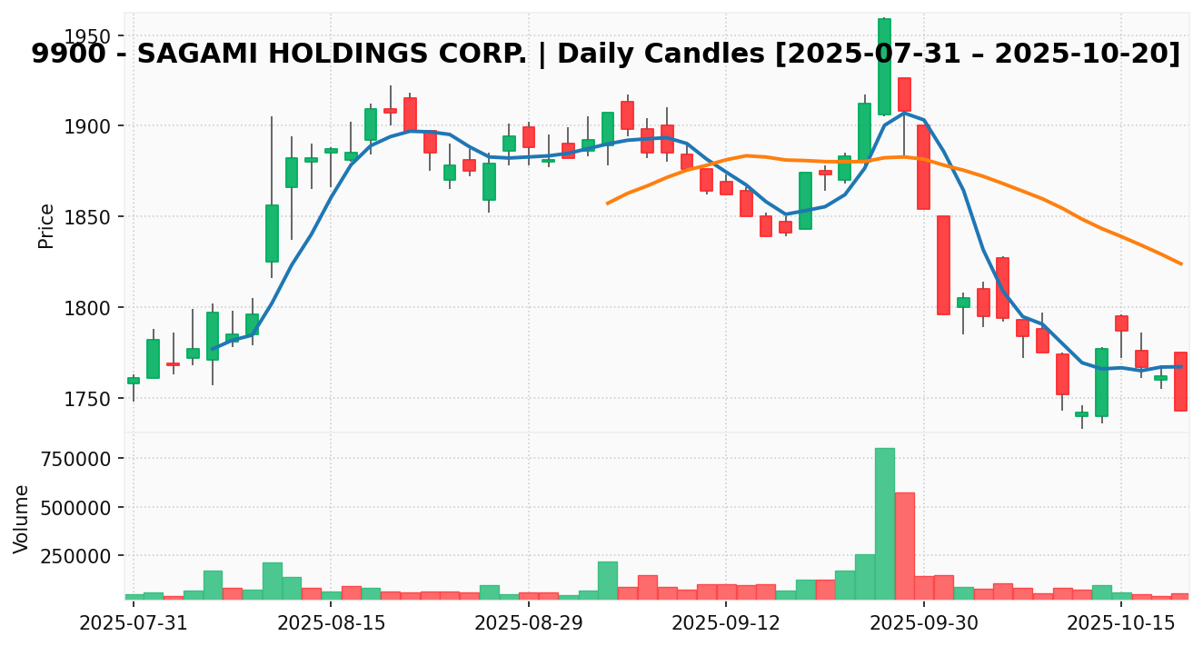サガミ(銘柄コード:9900) ※2025/10/21朝更新