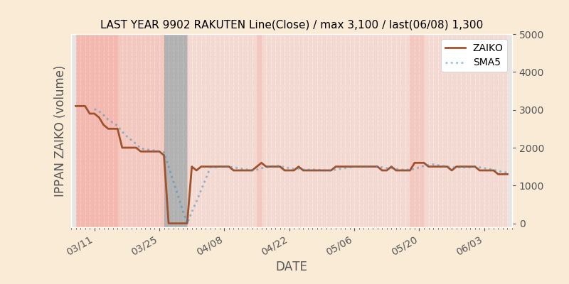 権利落ち日になると在庫が急回復します。どれだけの在庫が供給されたかを類推できます。もちろん、権利付最終日以前に大量補充された例も目立ちますから、過去チャートをご覧になる際は日付にご注意ください。