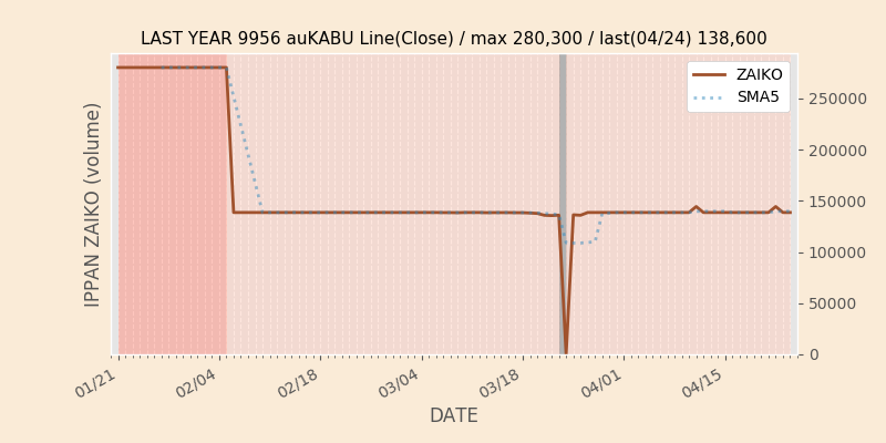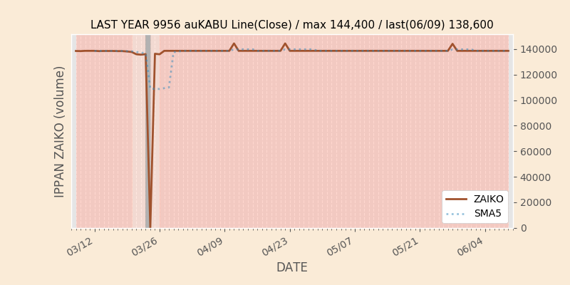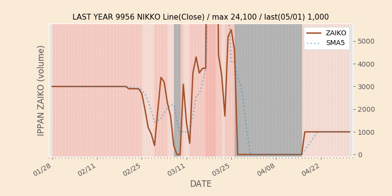 権利落ち日になると在庫が急回復します。どれだけの在庫が供給されたかを類推できます。もちろん、権利付最終日以前に大量補充された例も目立ちますから、過去チャートをご覧になる際は日付にご注意ください。