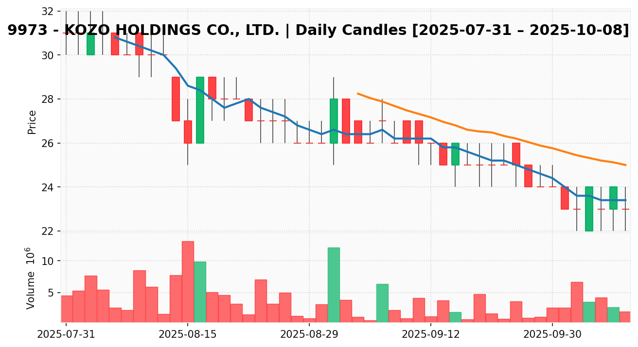 KOZO(銘柄コード:9973) ※2025/10/09朝更新