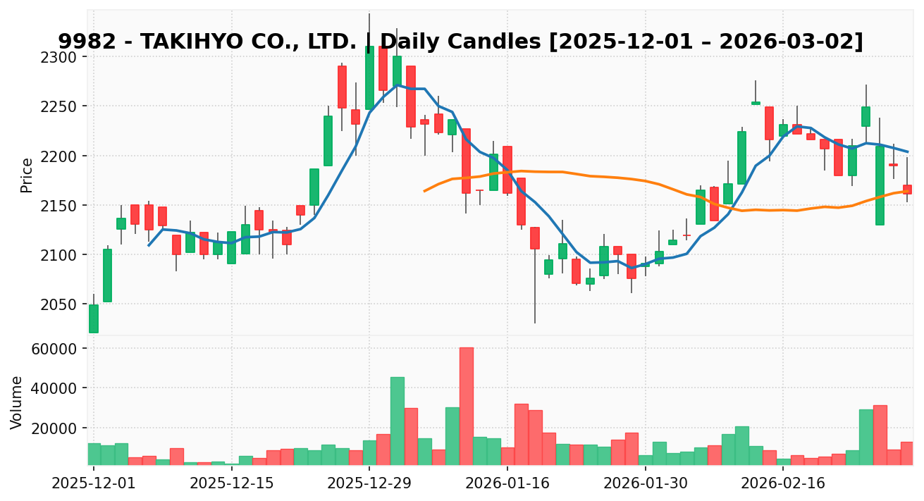 タキヒヨー(銘柄コード:9982) ※2026/03/03朝更新